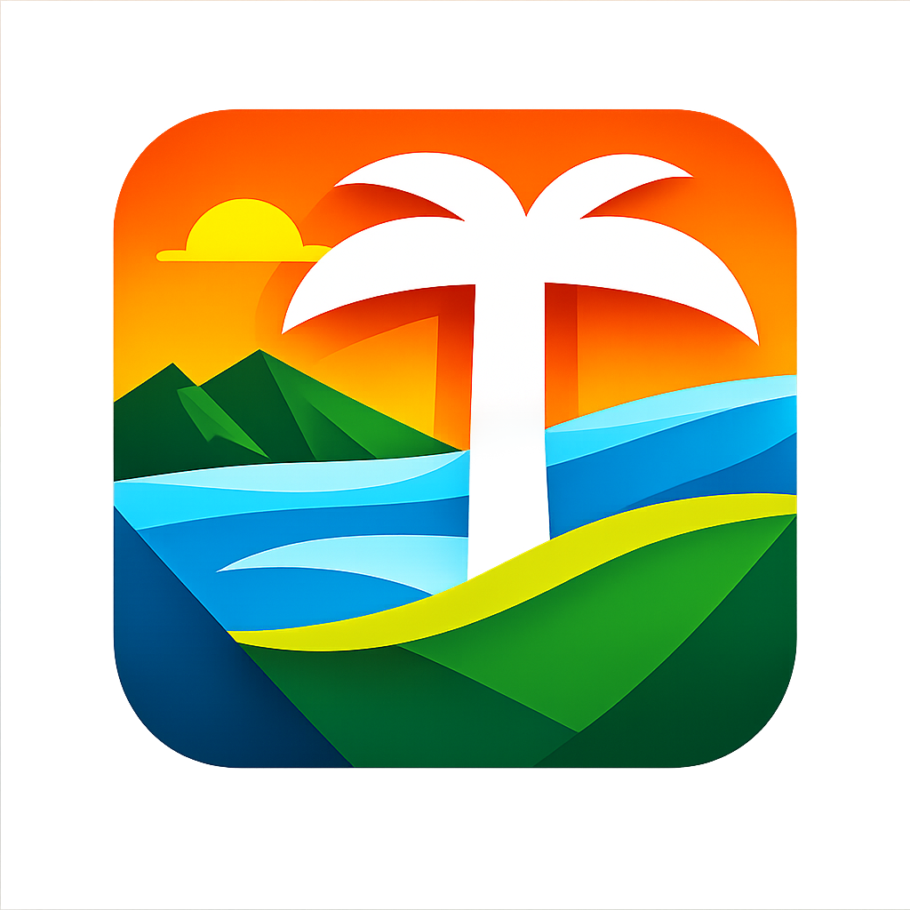 Tropical island paradise with lush jungles and crystal waters.